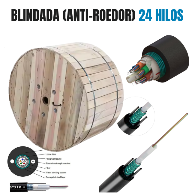 Cable de Fibra Óptica Blindado(Anti-roedor) 24 hilos G652D