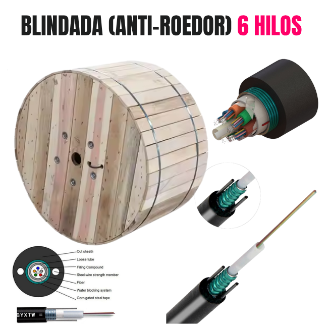 Cable de Fibra Óptica Blindado(Anti-roedor) 6 hilos G652D